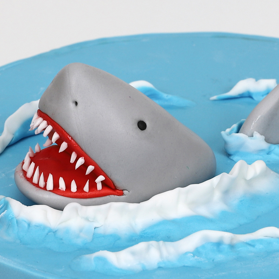 Under the sea cake with handmade shark, octopus and crab decorations. Finished with edible coral and a wooden signpost with a birthday message.